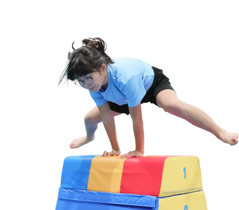 - 幼児から小学生を中心にとび箱、鉄棒、マットなどの基本的な器械体操の指導や体幹トレーニング、ビジョントレーニングの指導